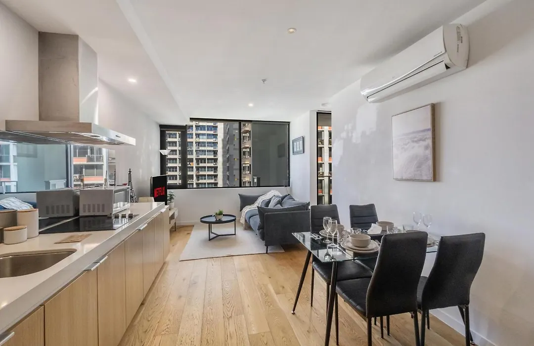 このアパートには設備の整った台所が備わります 宿泊施設からわずか0.6キロメートルほどのKing St/Lonsdale Stバス停からバスに乗って、メルボルンの他の地域を探索することもできます。
