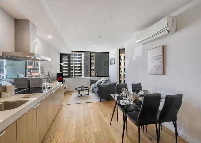 Bright & Stylish 2Bd 1Br City Apartment メルボルンはヘレニック ミュージアムとBP Head Officeから徒歩でわずか9分に位置し、庭園の景色を望めます。 ビジネスとレジャーの両方でWiFiを利用することができます。